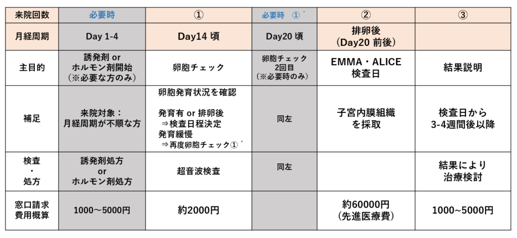 ・来院回数は順調であれば3回程度 (1卵胞発育確認 / 2 検査当日 / 3 結果説明 )