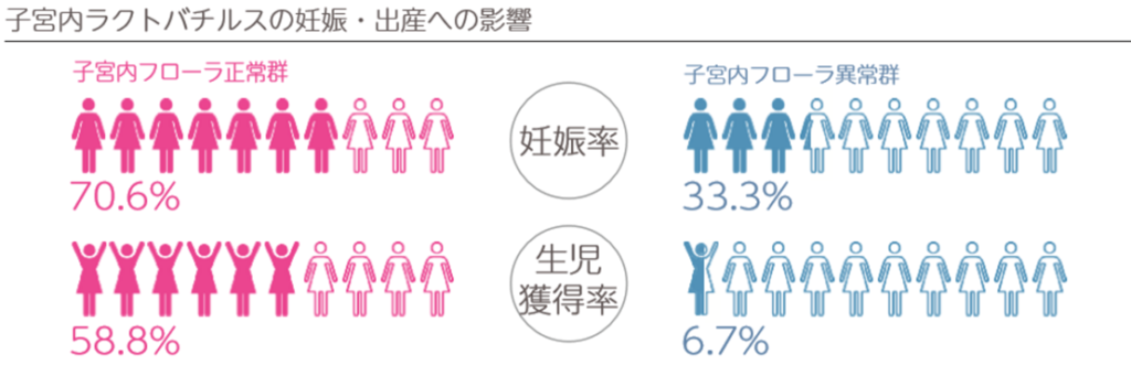 子宮内細菌叢は乳酸菌過多になっていると妊娠率が高く、