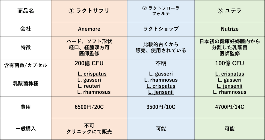 ・国内で入手可能な乳酸菌腟剤を紹介・比較について